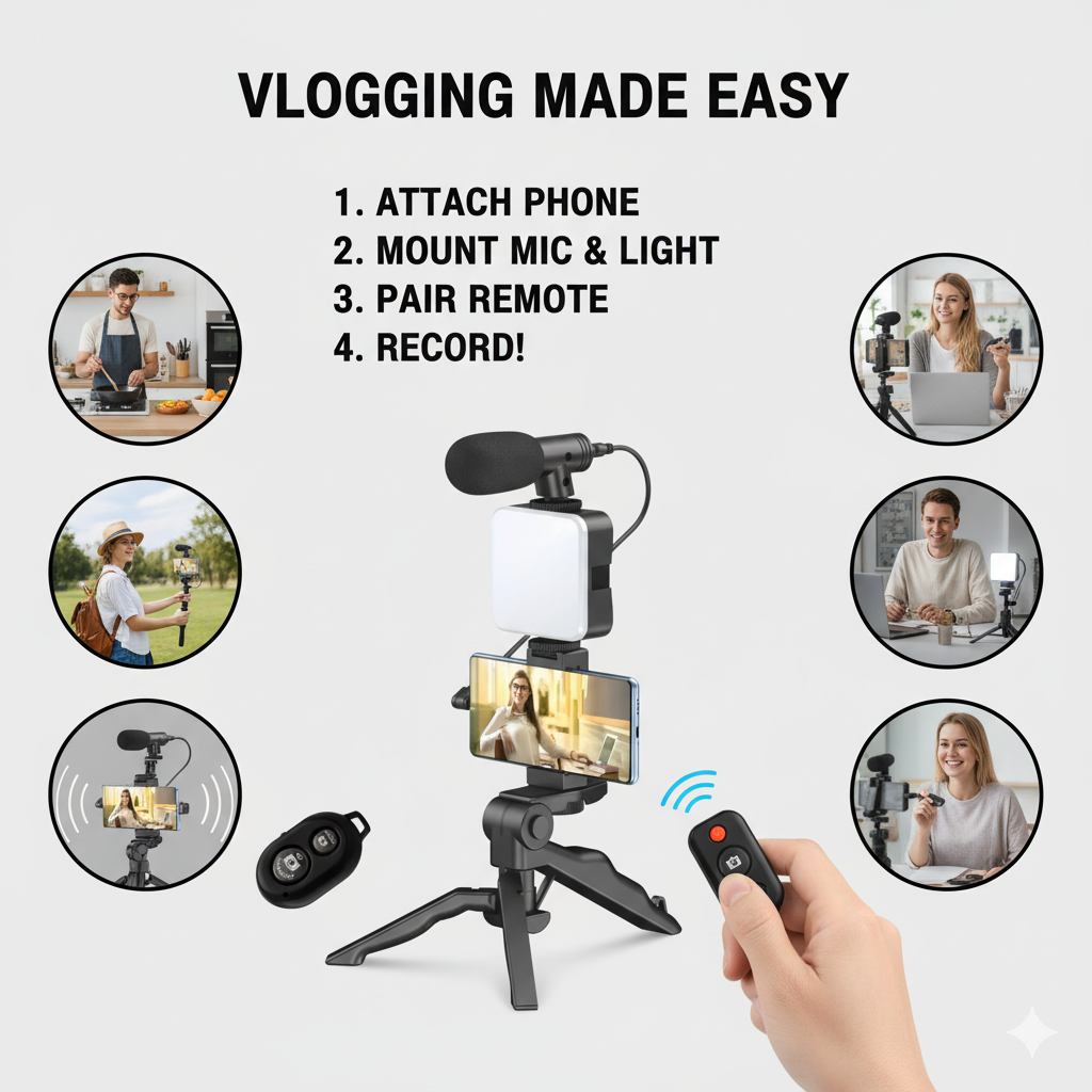 Groovastore Vlogging Cardioid Microphone with Bluetooth – High-Quality Audio for Content Creators, YouTube, and Live Streaming Video Making Vlogging Kit 6 in 1